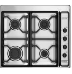 Acero inoxidable de 60 cm. encastrable con encendido electrónico a una mano y rejas de hierro fundido.